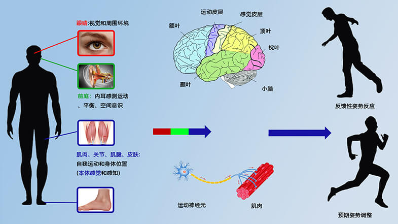 人体的平衡系统通过内耳、眼睛、肌肉、关节和大脑之间的交流,通过不断的位置检测、反馈和调整来工作。