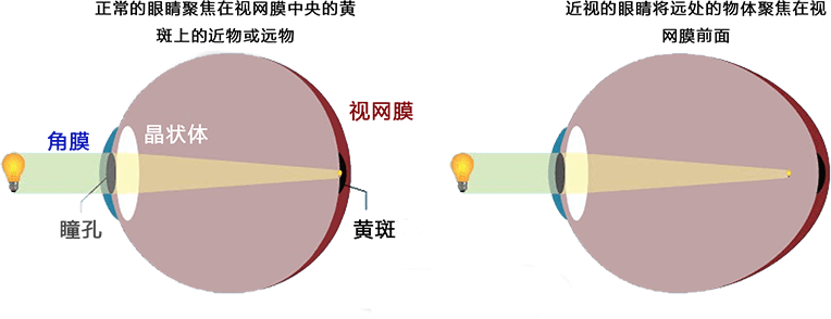 近视患者不及时矫正,则视网膜难以清晰成像;